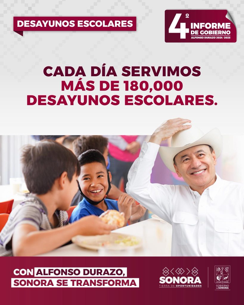 Cada mañana más de 180 mil niñas y niños reciben desayunos escolares que les garantizan nutrición y aprendizaje. #SonoraSeTransforma #AlfonsoDurazo