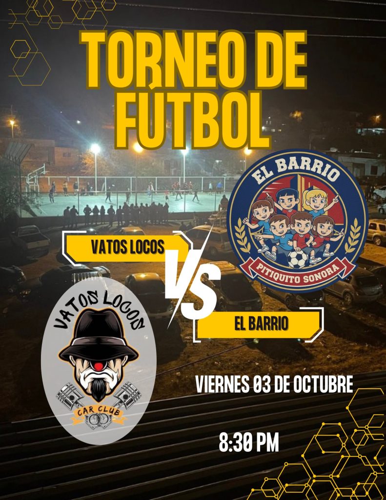 Este viernes 03 de octubre ven y disfruta de los juegos de fútbol 5, un espacio para fomentar la sana convivencia y el deporte en nuestra comunidad. ¡Acompáñanos y apoya a los equipos participantes